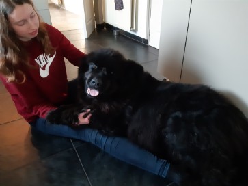 Mette is in totaal nu 13 kg gegroeid. De weegschaal gaf 67 kg aan gisteren. Ze heeft nog steeds enorme honger maar toch heeft ze duidelijk minder zin in haar brokken en meer zin in haar vleesmaaltijd. Ze gaat nog steeds graag mee wandelen maar ze gaat nu alleen mee en de route is flink ingekort. Waar we normaal gerust 5 a 6 km lopen (samen met de andere dames) is nu de afstand ingekort naar 1 km. En verder loopt ze gewoon rond in en om het huis natuurlijk en slaapt ze veel.