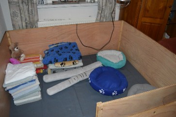 De werpkist staat alweer klaar, de handdoeken, lakens en vetbedden worden momenteel uitgewassen.
